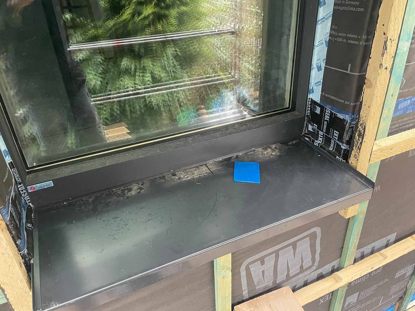 Sealing the edge of the window cills to keep wind and water tight before cladding goes on