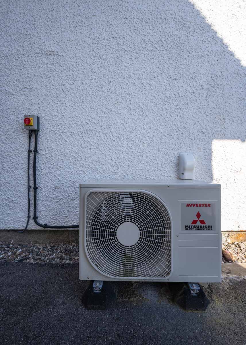 This approach came about initially because when I spoke to a local heat pump installer I could not convince them that the heat load of the house would be below 5 kW (the size of the smallest air-to-water heat pumps), let alone the 1.5 kW the PHPP was suggesting. Mindful of how important sizing is to heat pump performance I started looking at alternatives. I also liked the idea that the radical things we had done to the fabric and ventilation of the house would allow us to save money on the capital cost of the heating system. The air-to-air minisplit ended up costing us £1,500 installed, a big saving on the typical cost of an air-to-water heat pump, even when factoring in that we had to make separate provision for hot water.