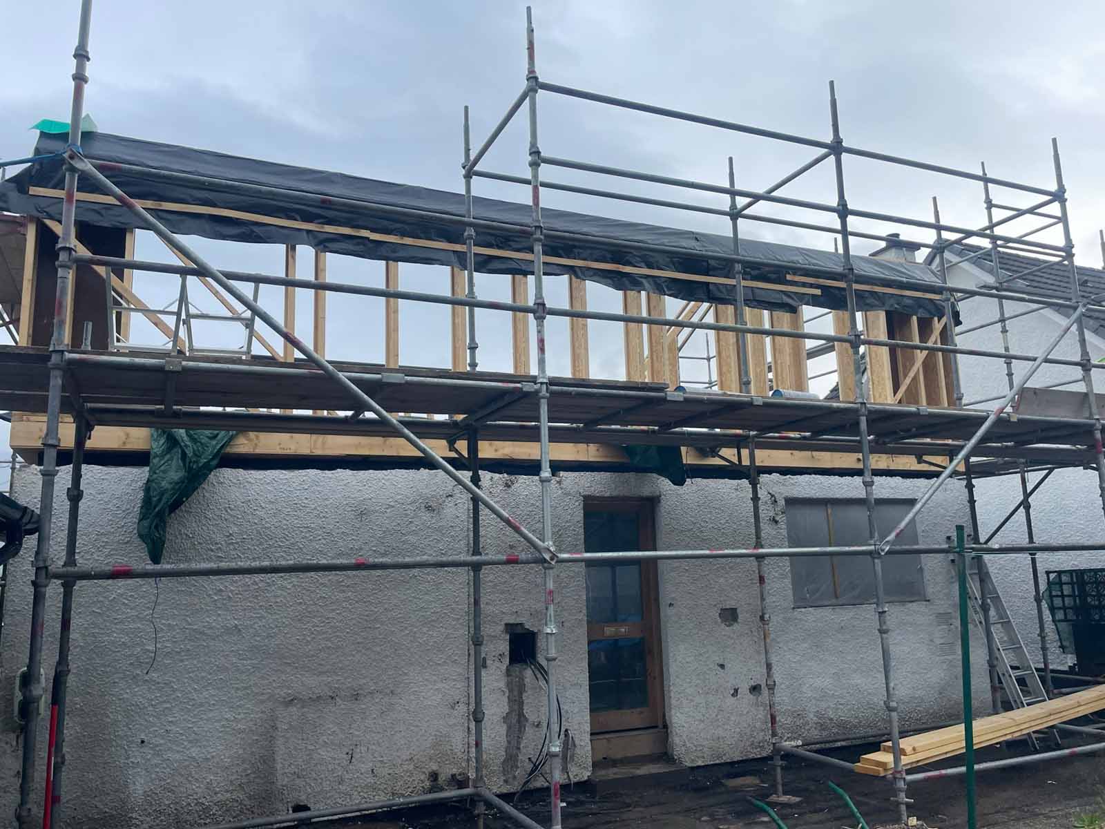 Existing blockwork rainscreen and timber frame extension