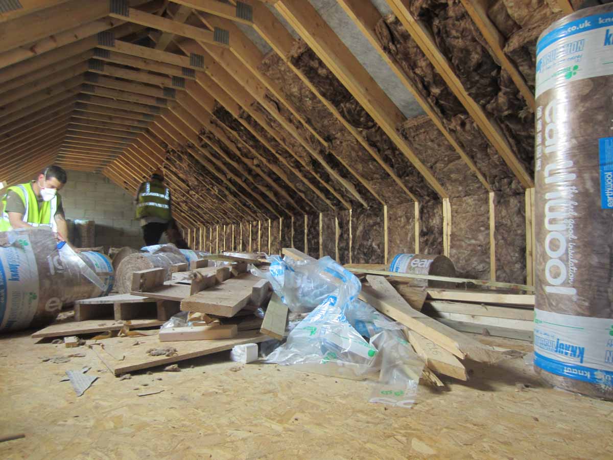 Roof (insulated on ceiling): Cold roof structure with 400mm of fibreglass insulation between and above 200mm deep joists Pro clima Intello Plus VCL/airtight membrane below rafters with plasterboard and skim finish internally. U-value: 0.11 W/m2K
