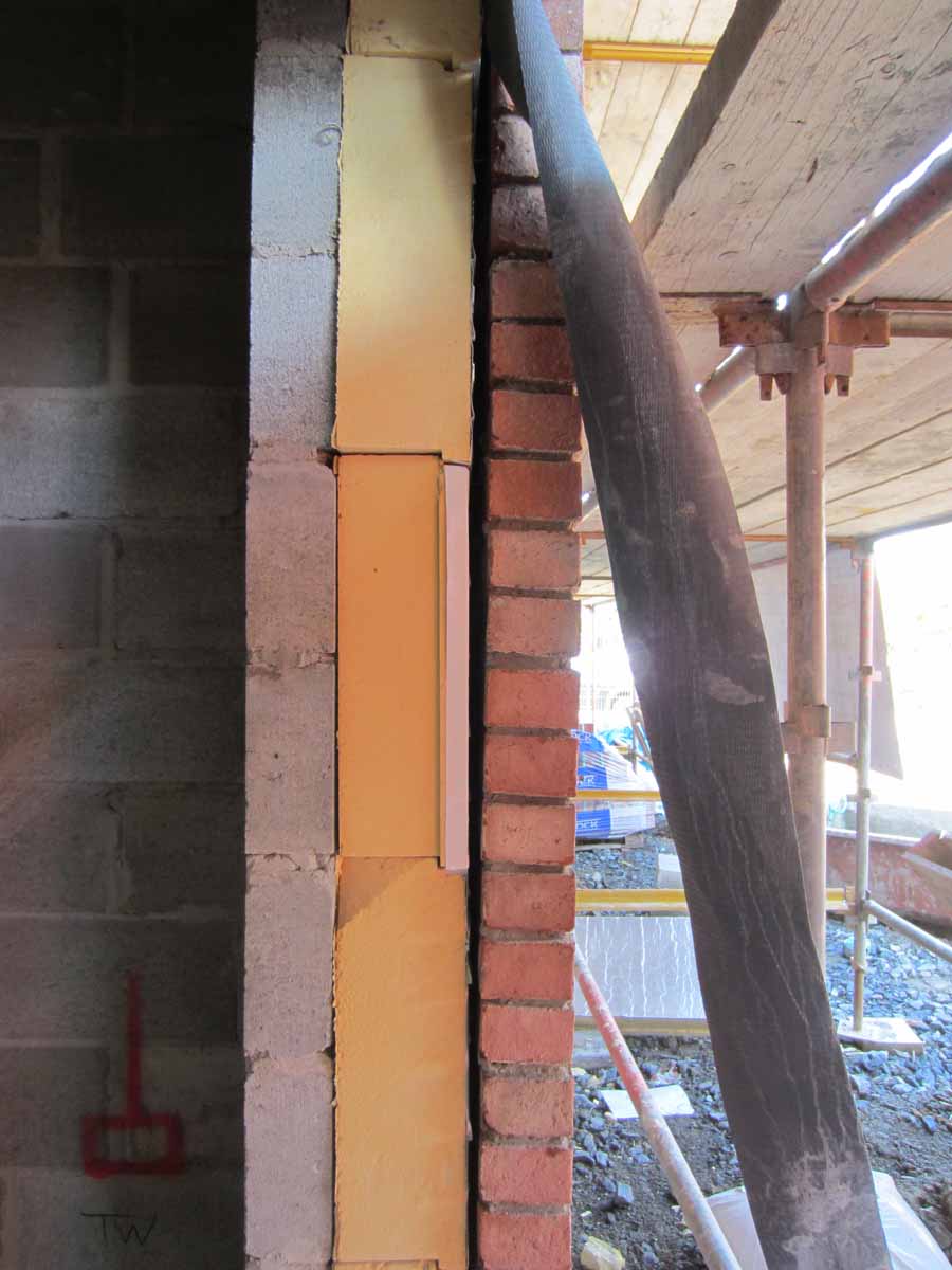 The external walls are blockwork with a 150mm cavity, full-filled with Xtratherm CavityTherm rigid PIR insulation