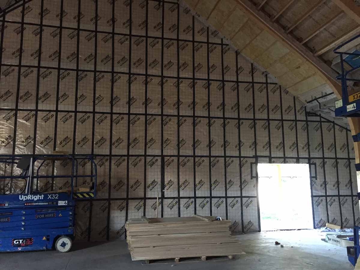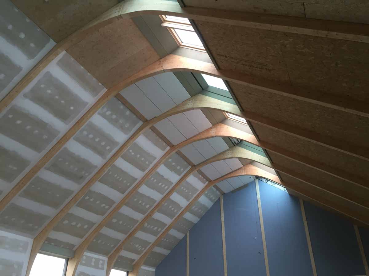 The roof and wall build-up features Isover Timber Frame Batt 32 insulation with Isover Vario KM Duplex vapour control and airtightness membrane to the inside of this The roof and wall build-up features Isover Timber Frame Batt 32 insulation with Isover Vario KM Duplex vapour control and airtightness membrane to the inside of this