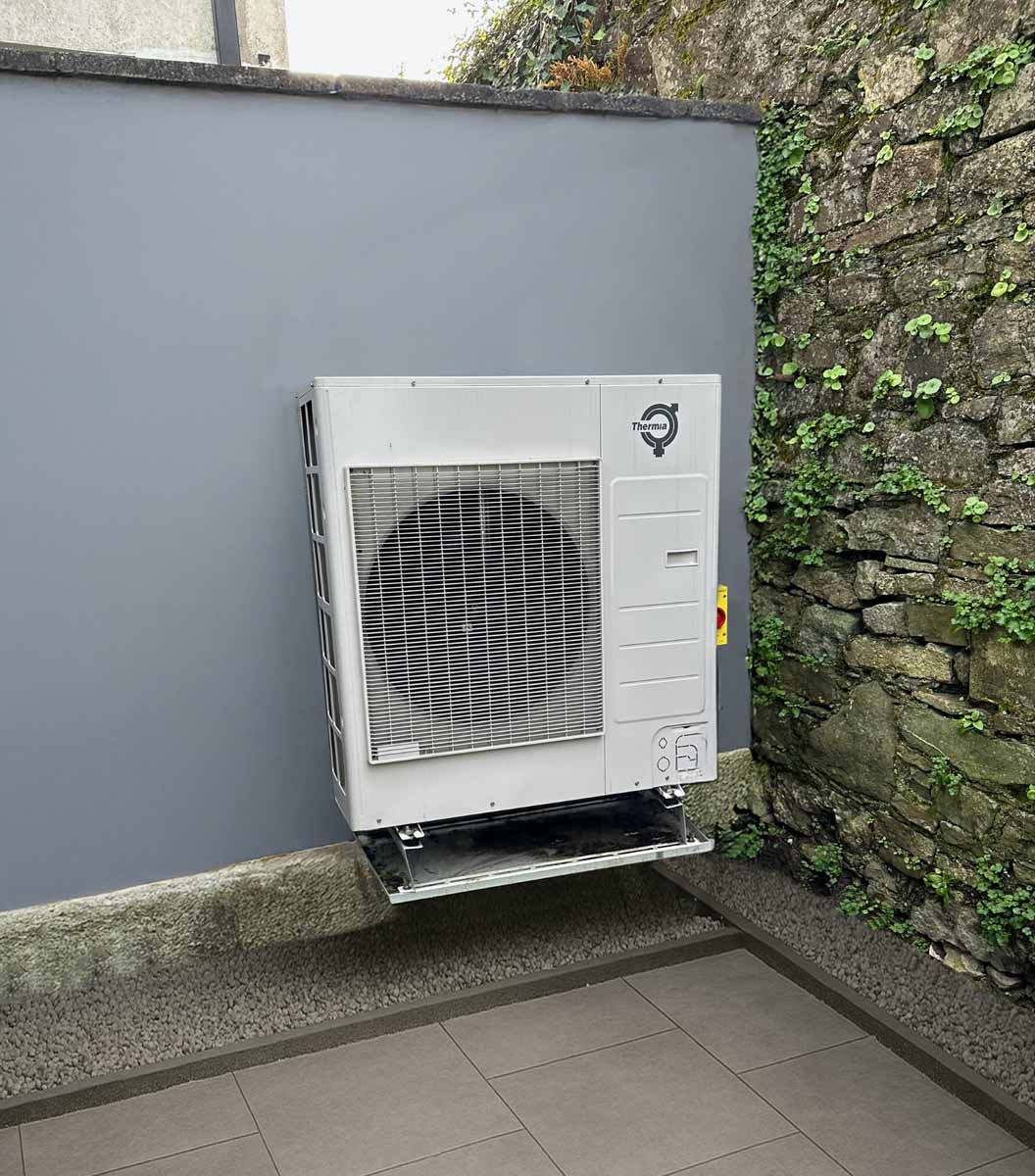 Heating system: Before: 20-year-old oil boiler & radiators throughout entire building. After: Thermia Itec 8 kW with sCOP of 4.45 fitted existing steel traditional column radiators from Best Heating.
