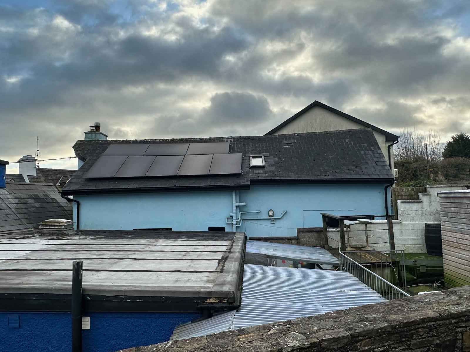 Electricity: 12 x Longi Solar LR5-54HPB-405M panels solar photovoltaic array with average annual output of 4.46 kW. No storage, prioritised for domestic hot water heating using an Eddy via immersion and electric car charging, excess electricity exported.