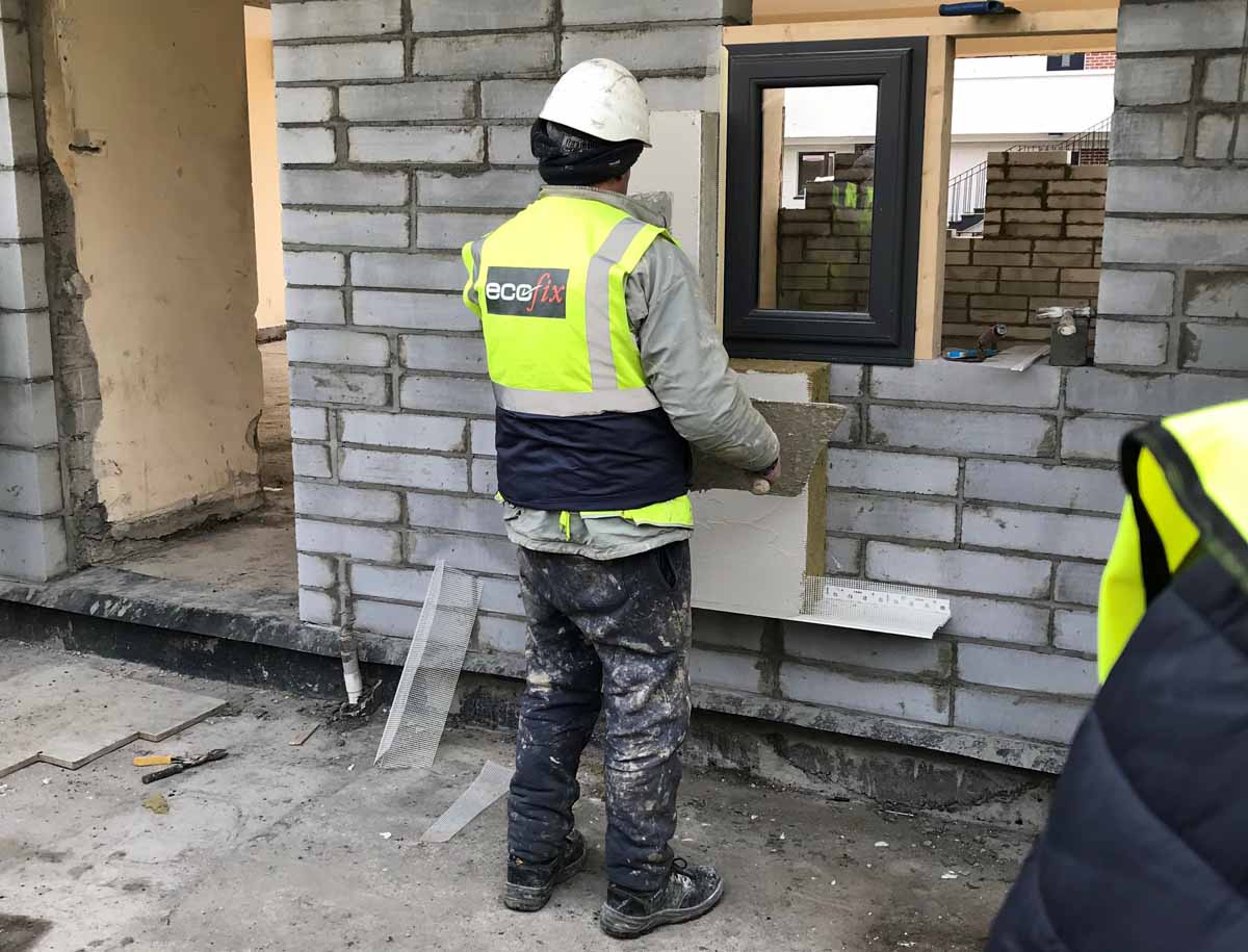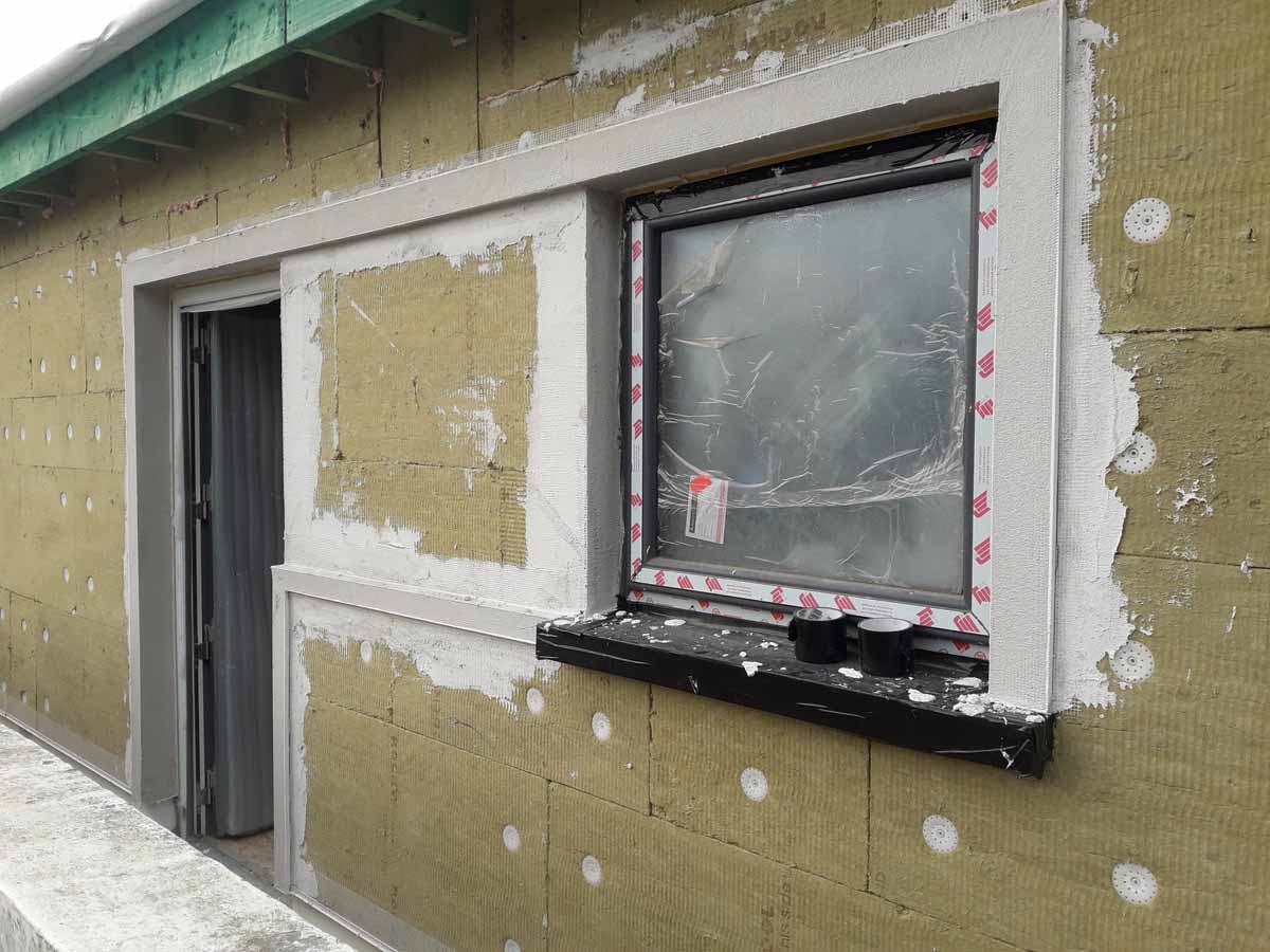 Compacfoam thermal breaks were installed as structural support under windows, with aluminium starter track for the external insulation layer Compacfoam thermal breaks were installed as structural support under windows, with aluminium starter track for the external insulation layer